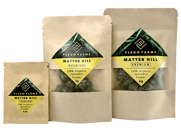by Flego Farms is a premium, 100% organic cannabis flower with stingy looks and a touch of citron smell. Packaged in natural kraft material with a clear window, each batch showcases the farm’s sustainable growing practices and meticulous attention to detail. With its distinct appearance and consistent quality, Matter Hill exemplifies the craftsmanship behind Flego Farms curated selection.